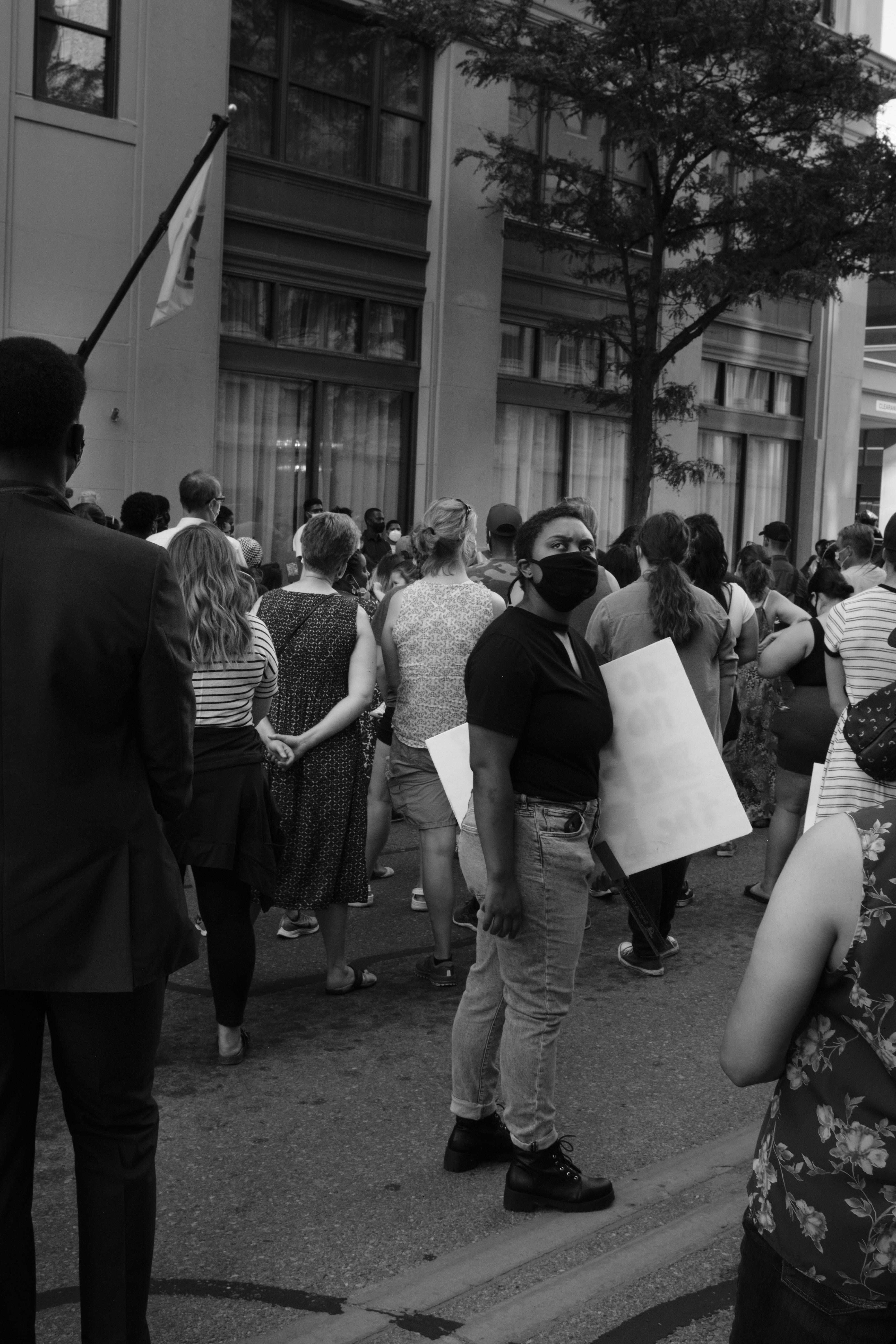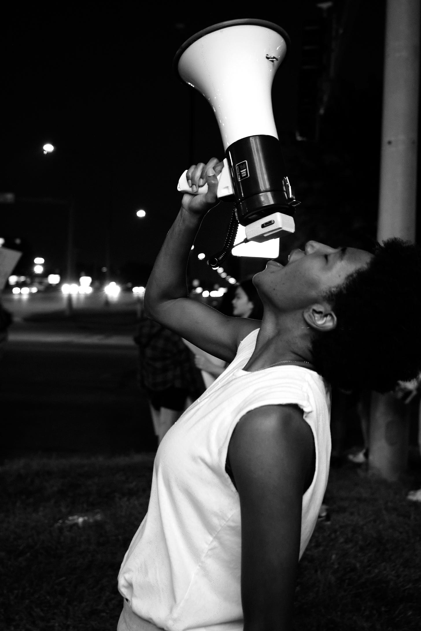 I’ve always loved the look of strength and determination in her pose and eyes. This was during a BLM rally and I believe she was looking back and eyeing the police that were on the adjacent rooftop.
